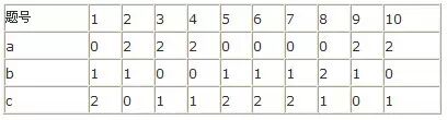 测验答案,见下表: